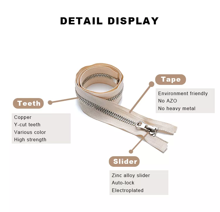 A TRC újrahasznosított fém cipzár elsősorban újrahasznosítható ötvözetekből és poliészter szálakból készül, sikeresen egyensúlyozva a kiváló tartósságot, simaságot és a környezetvédelmi felelősséget. A terméket szigorúan a nemzetközi környezetvédelmi előírásoknak megfelelően gyártják, jelentősen csökkentve az erőforrás-felhasználást és a környezeti lábnyomot, így megbízható garanciát jelent a zöld ellátási lánc kiépítésére és a fenntartható fejlődési stratégia megvalósítására.